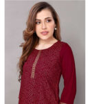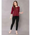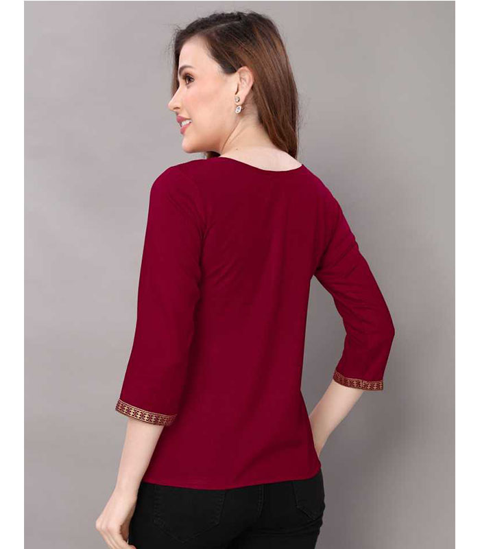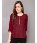 Maroon Color Foil Printed Rayon Regular Top with Round Neck and 3/4 Sleeves