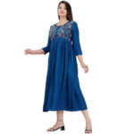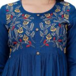 D Fashion Women Embroidered Rayon Flared Kurta (Light Blue)